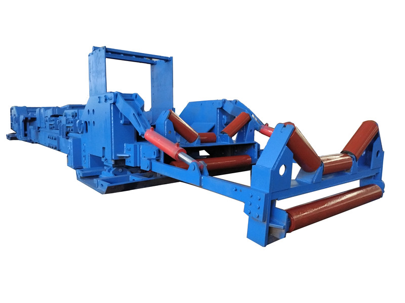 皮帶機(jī)自移機(jī)尾是順槽轉(zhuǎn)載機(jī)與帶式輸送機(jī)的中間銜接裝置,滿足高產(chǎn)高效工作面高進(jìn)尺、快推進(jìn)的配套要求。具有膠帶跑偏調(diào)整、轉(zhuǎn)載機(jī)推移方向校正和自行前移等功能,具有以下特點(diǎn):